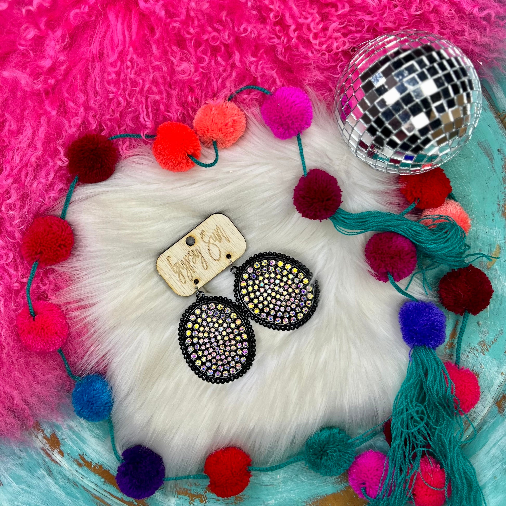 Black & AB Rhinestone Large Oval Earrings
